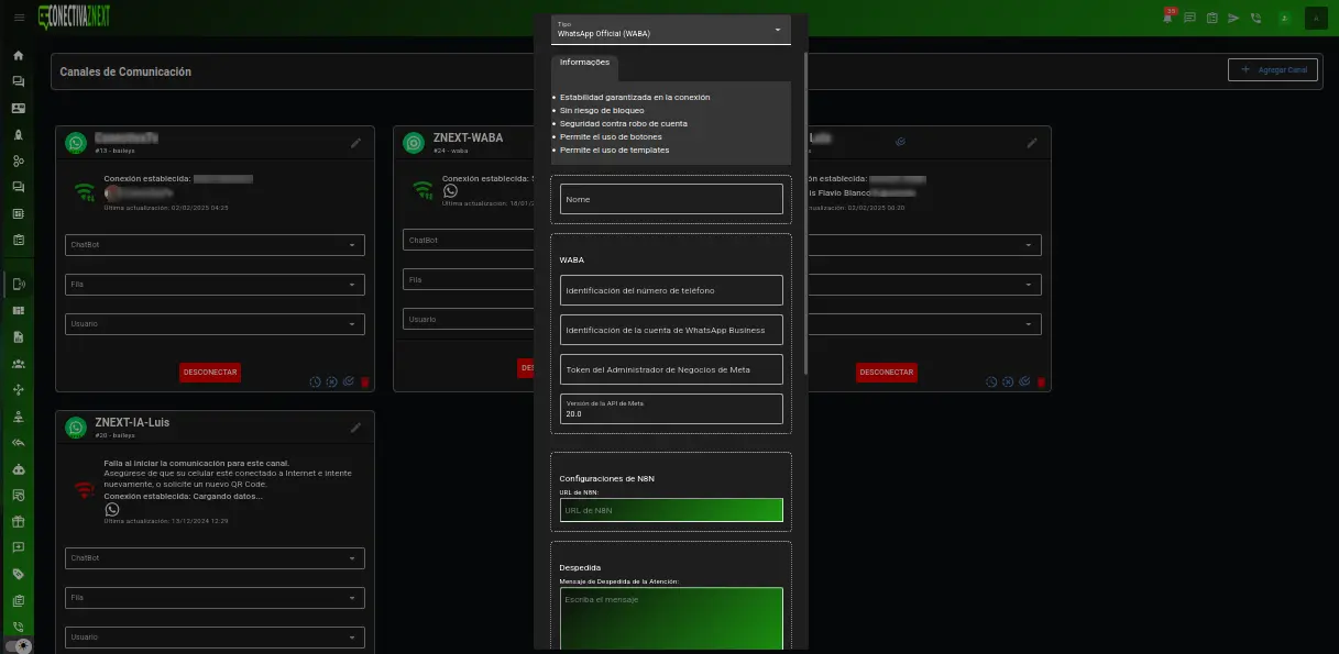 Genera el QR en “Agregar Canal” y vincula tu WhatsApp desde la app móvil.