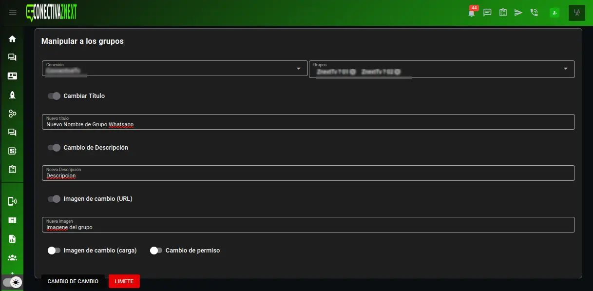Accenda a https://znext.conectiva.uk y haga login con los datos de la preba. En el Menu lateral izquierdo superior del panel CRM ZNEXT